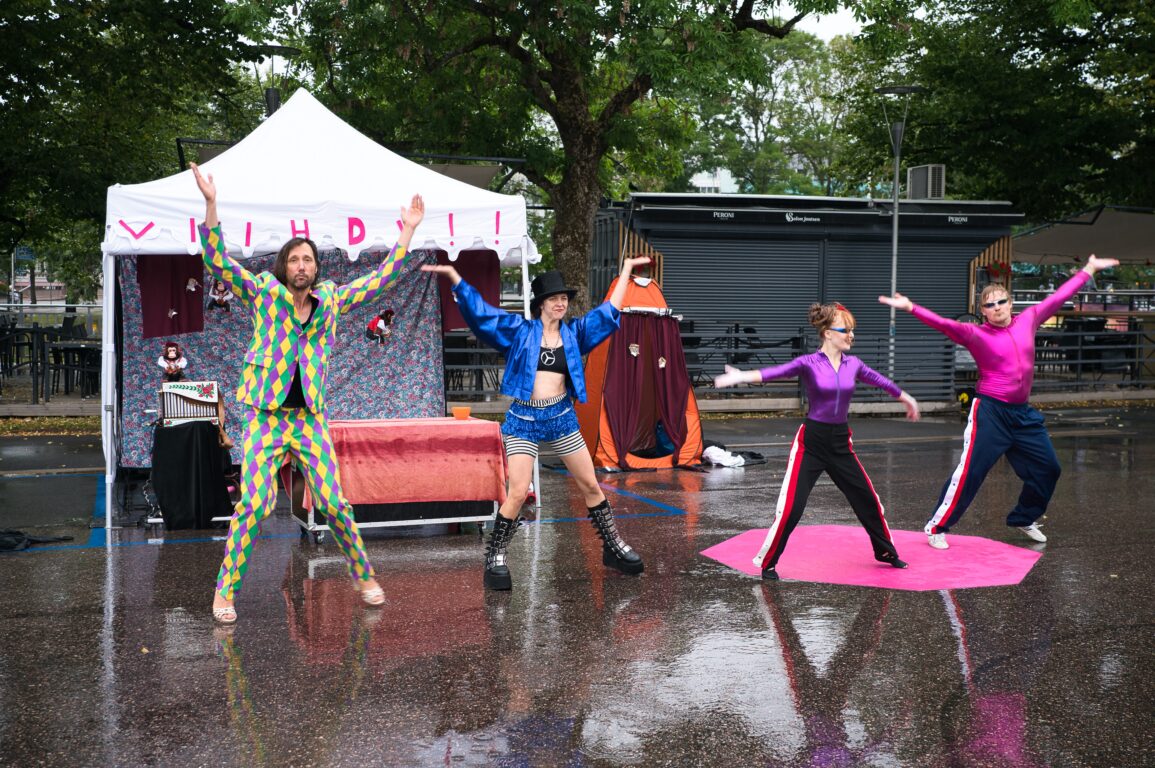 Tanssiin ja sirkukseen pohjautuva yllätyksellinen esitys, joka alkaa esiintyjien sulautuessa yleisön joukkoon ja kasvaa vähitellen näyttäväksi liikkeelliseksi kokonaisuudeksi. Mukana 4.7. Kisko-päivillä & 29.8.Muurlan Wanhan ajan markkinoilla.